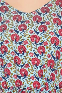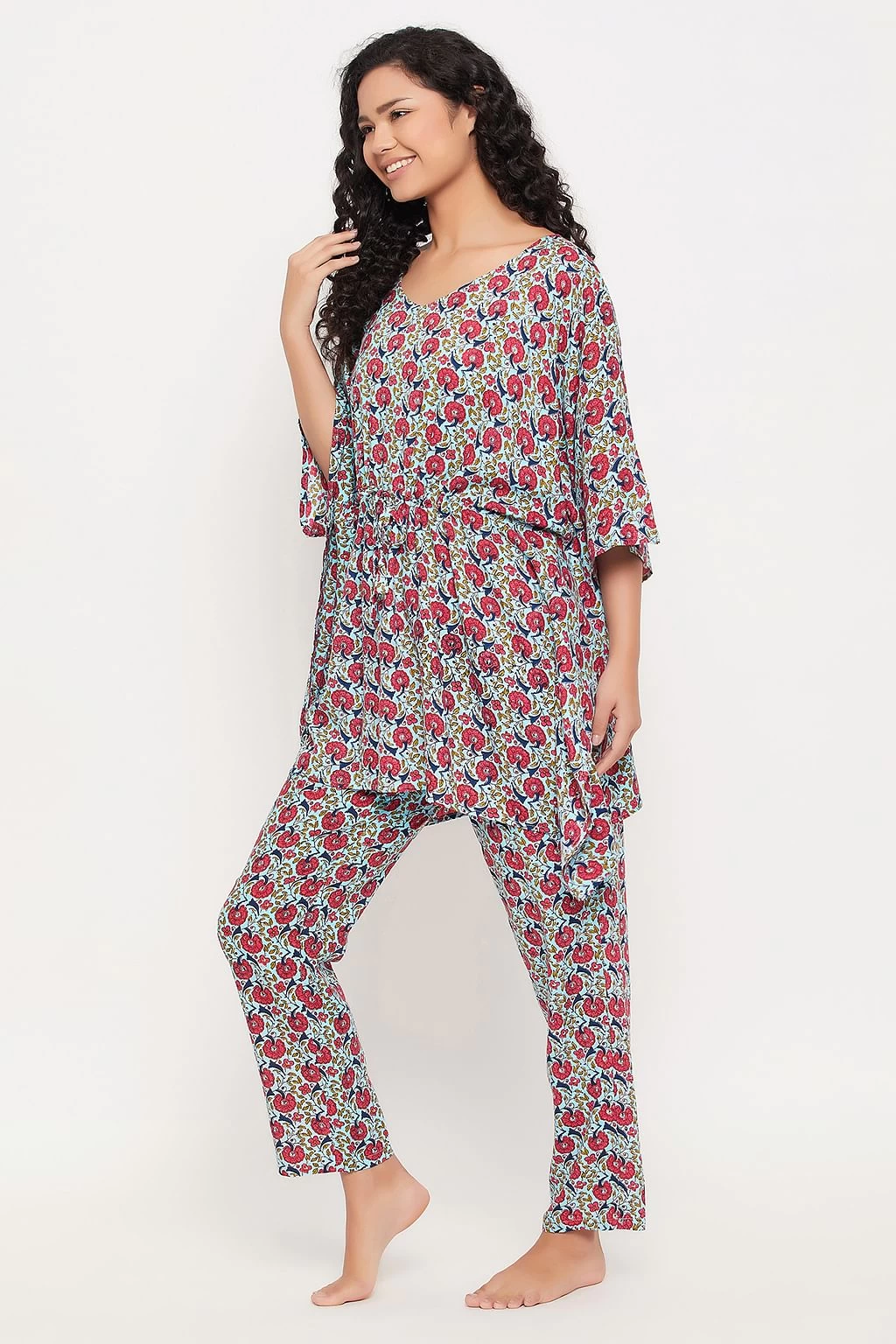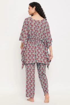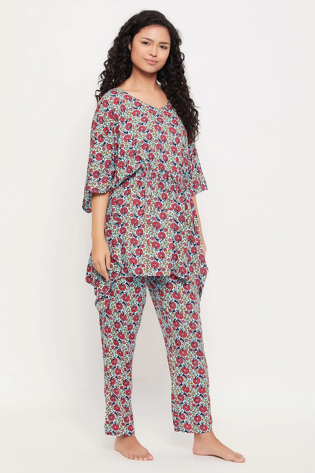 Pretty Florals Kaftan Top & Pyjama Set In Sky Blue – Rayon