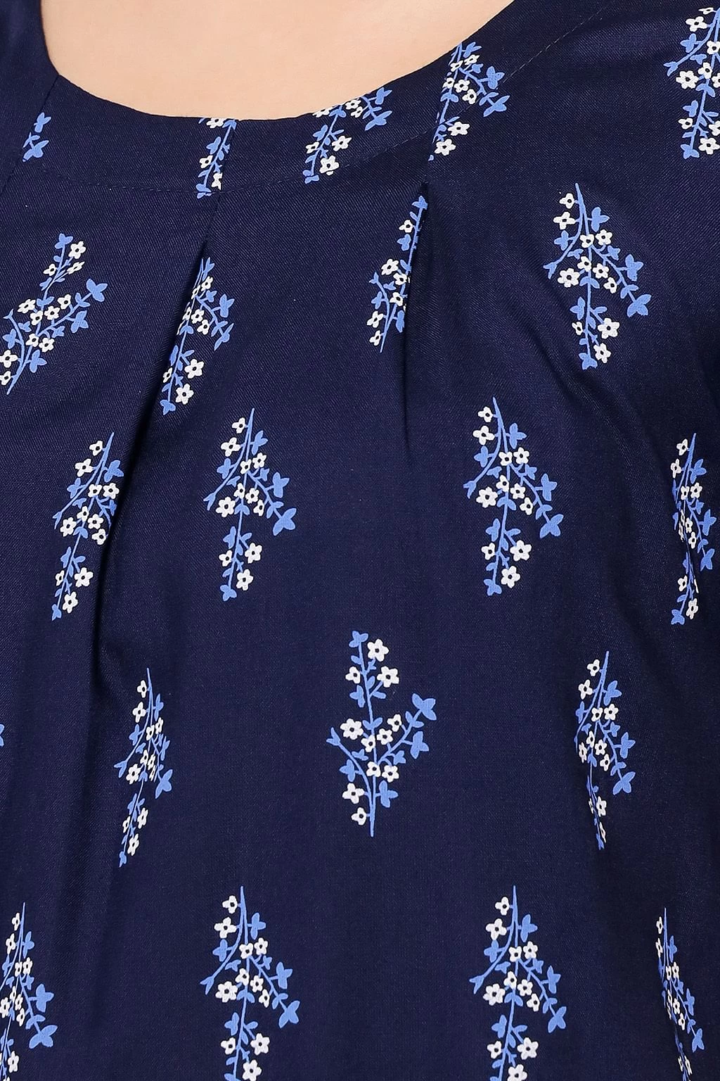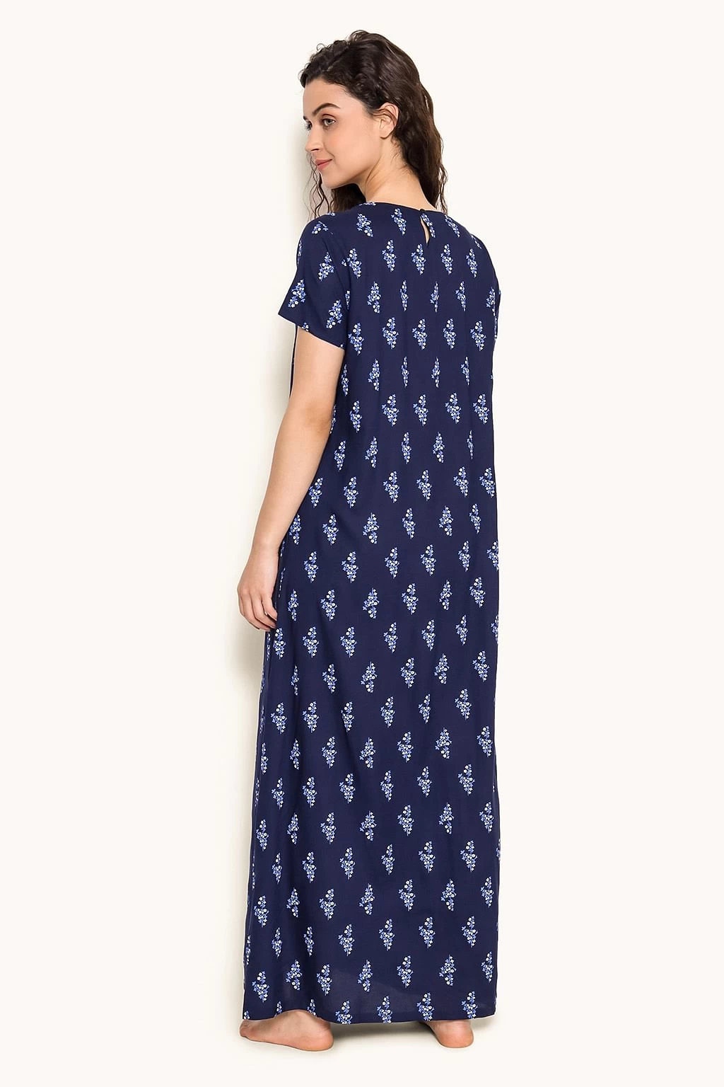 Pretty Florals Button Down Shirt & Pyjama Set In Dark Blue – Satin