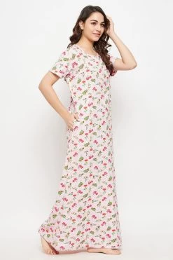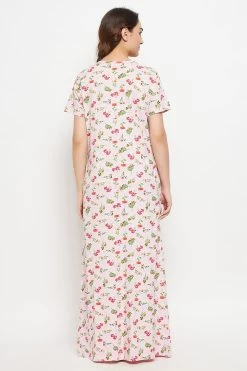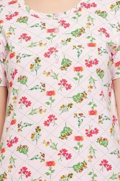 Pretty Florals Long Night Dress In Pink – 100% Cotton