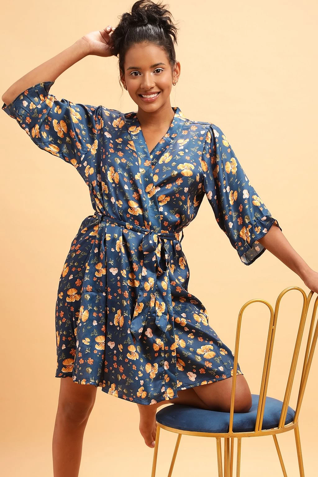 Be the first to review “Pretty Florals Robe In Navy- Satin” Cancel reply
