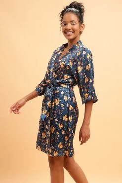 Pretty Florals Robe In Navy- Satin