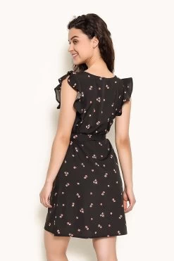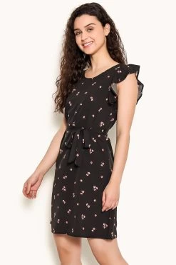 Pretty Florals Short Night Dress In Black – Crepe