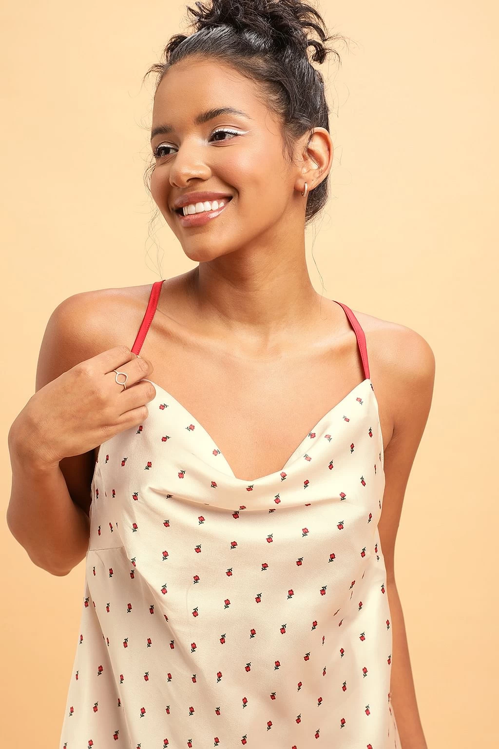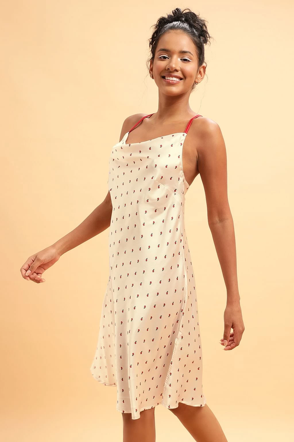 Champagne colour short night dress crafted with luxurious satin fabric.