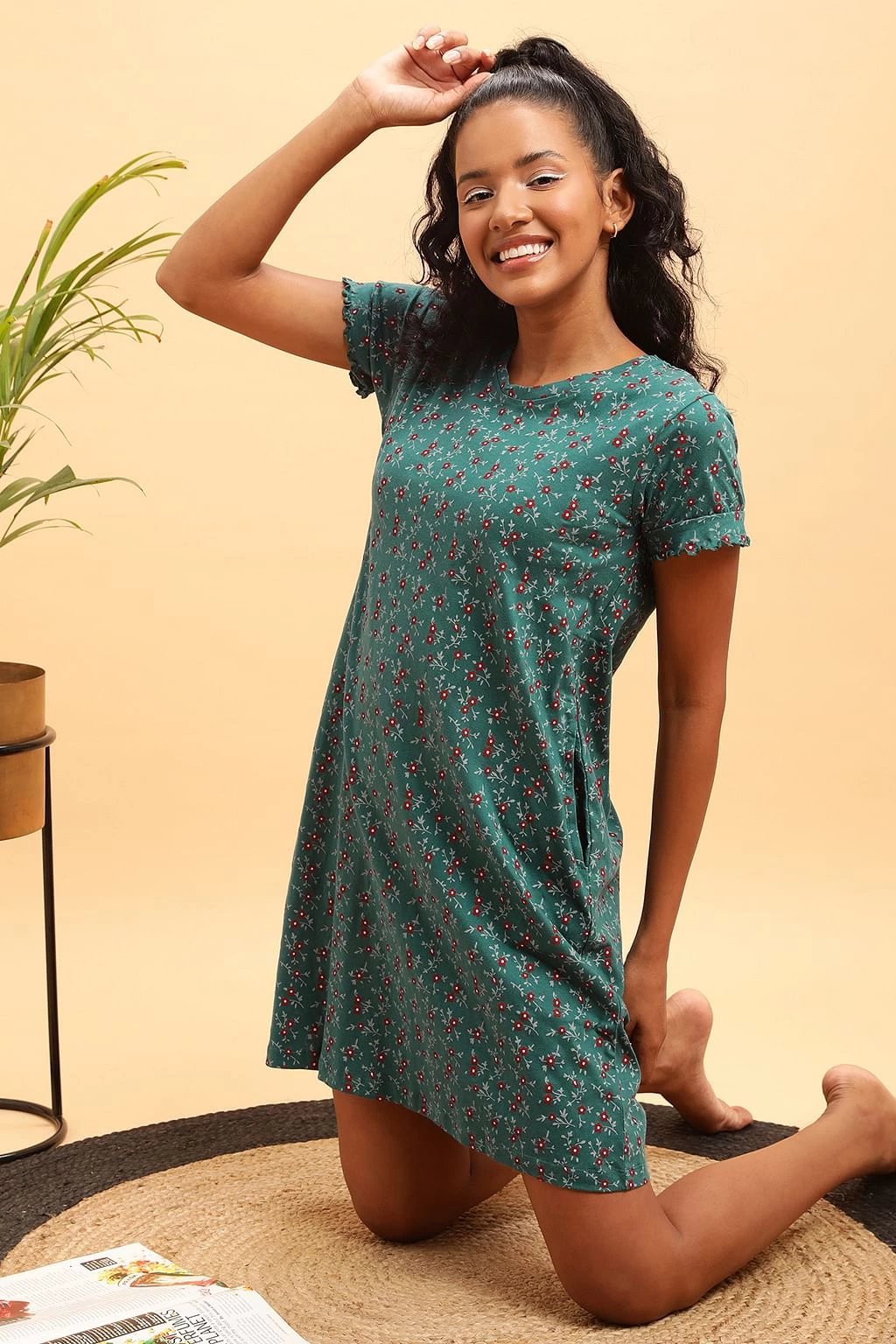 Teal blue short night dress crafted with soft & premium 100% cotton fabric.