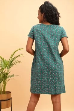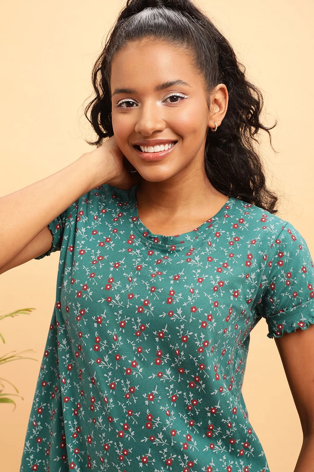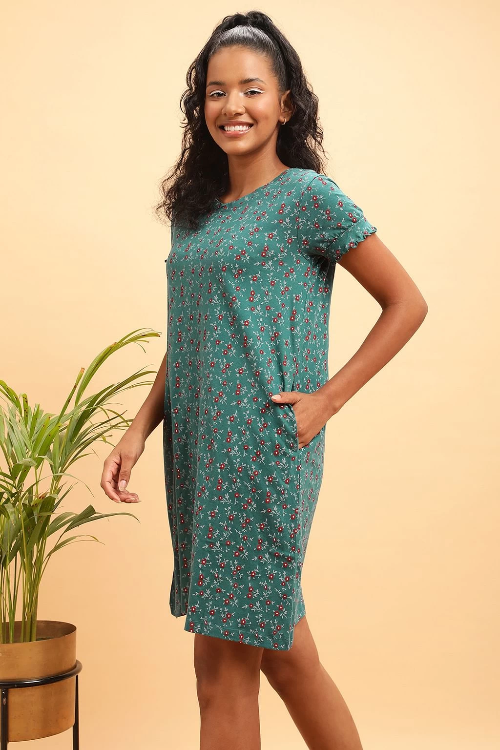 Pretty Florals Short Night Dress In Teal Blue – 100% Cotton