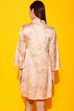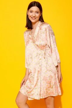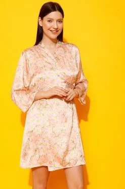 Pretty Florals Short Night Dress & Robe Set In Peach Colour – Satin
