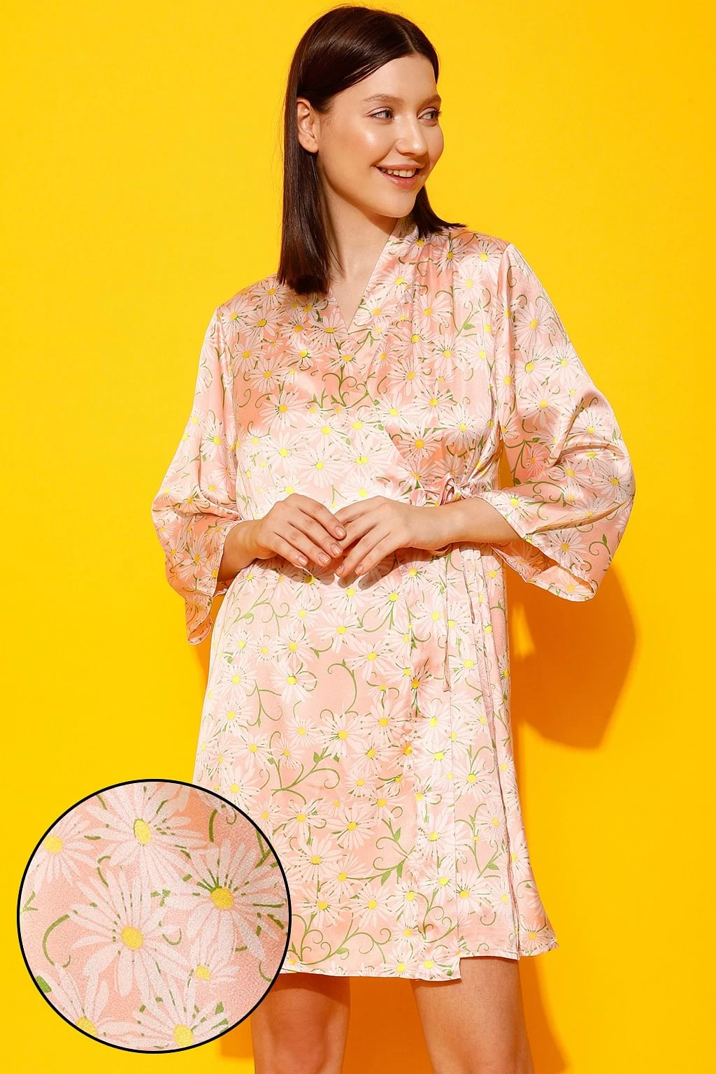 Be the first to review “Pretty Florals Short Night Dress & Robe Set In Peach Colour – Satin” Cancel reply