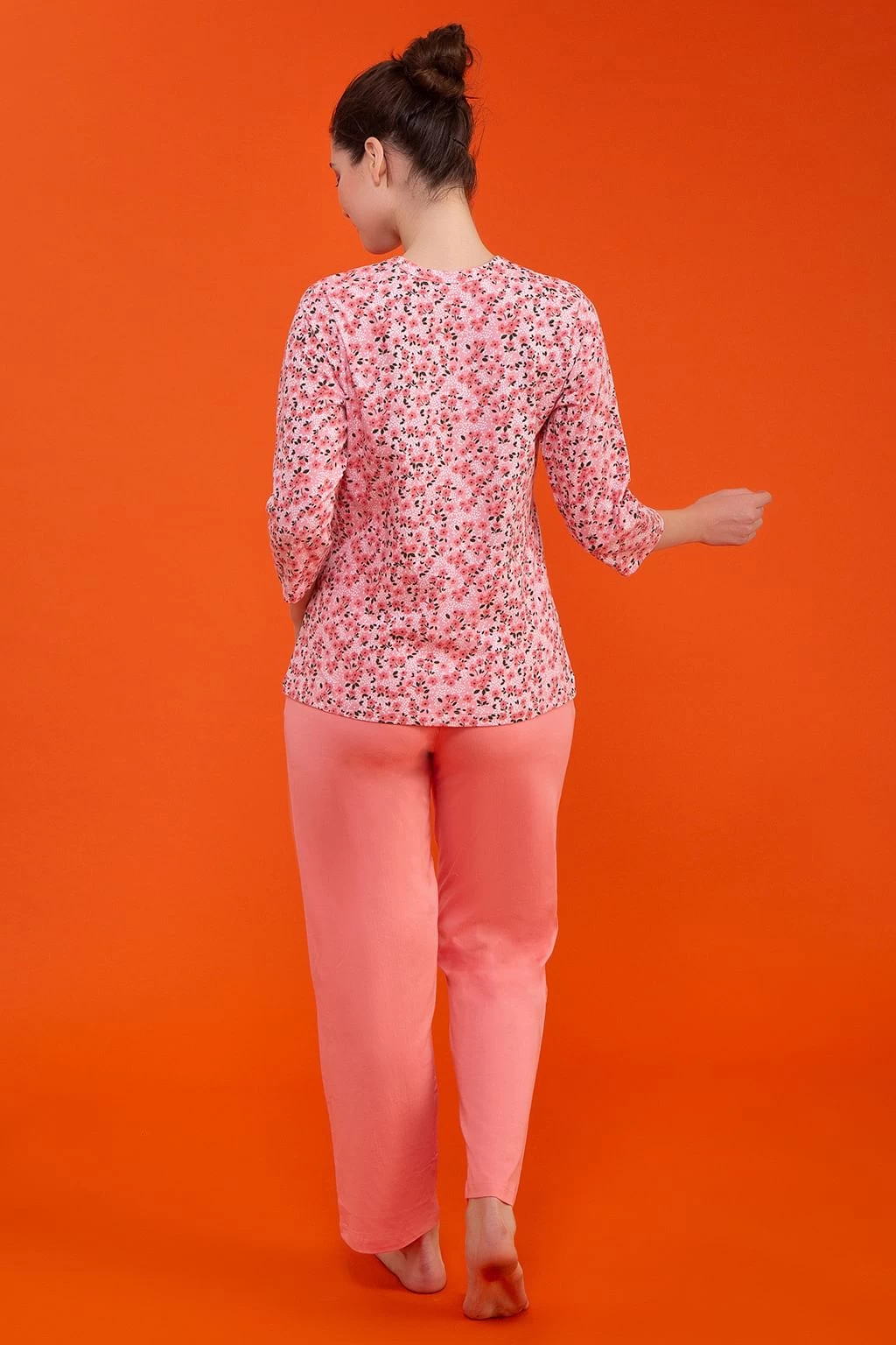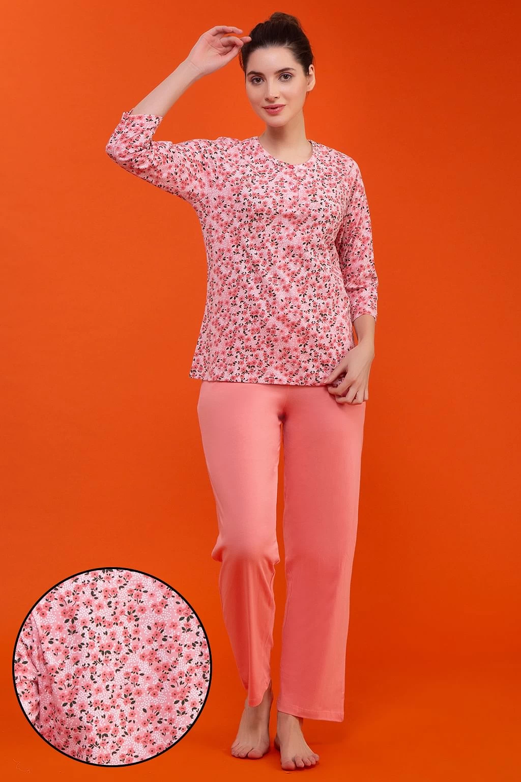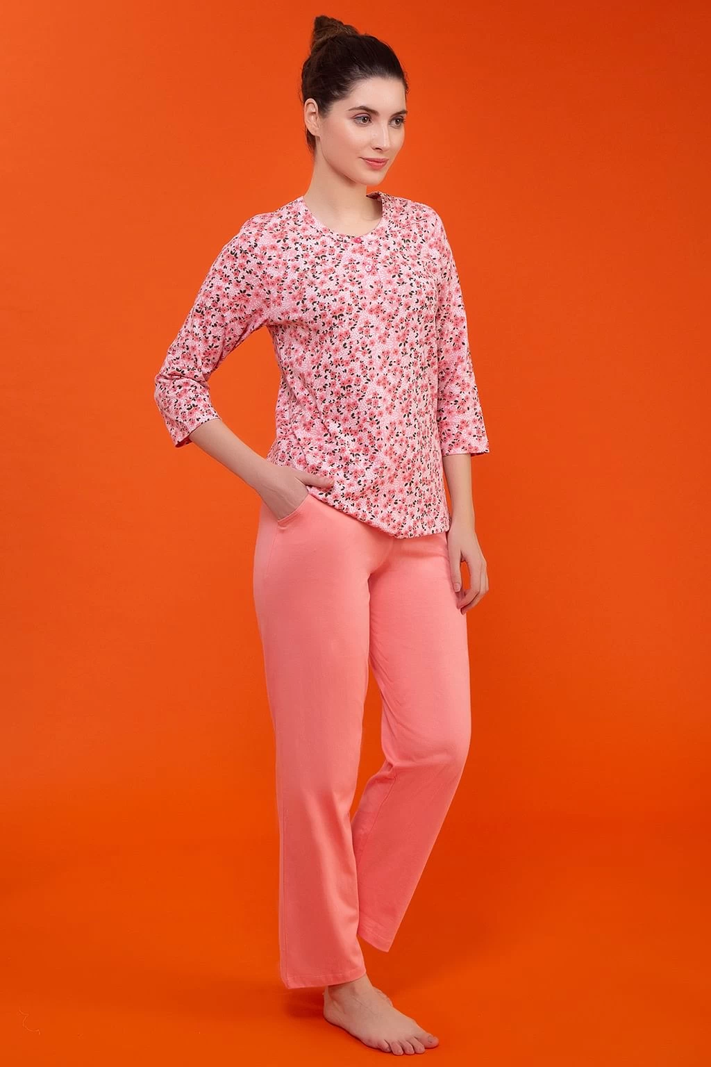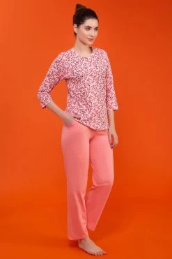 Baby pink top & solid pyjama set crafted with soft & premium 100% cotton fabric.