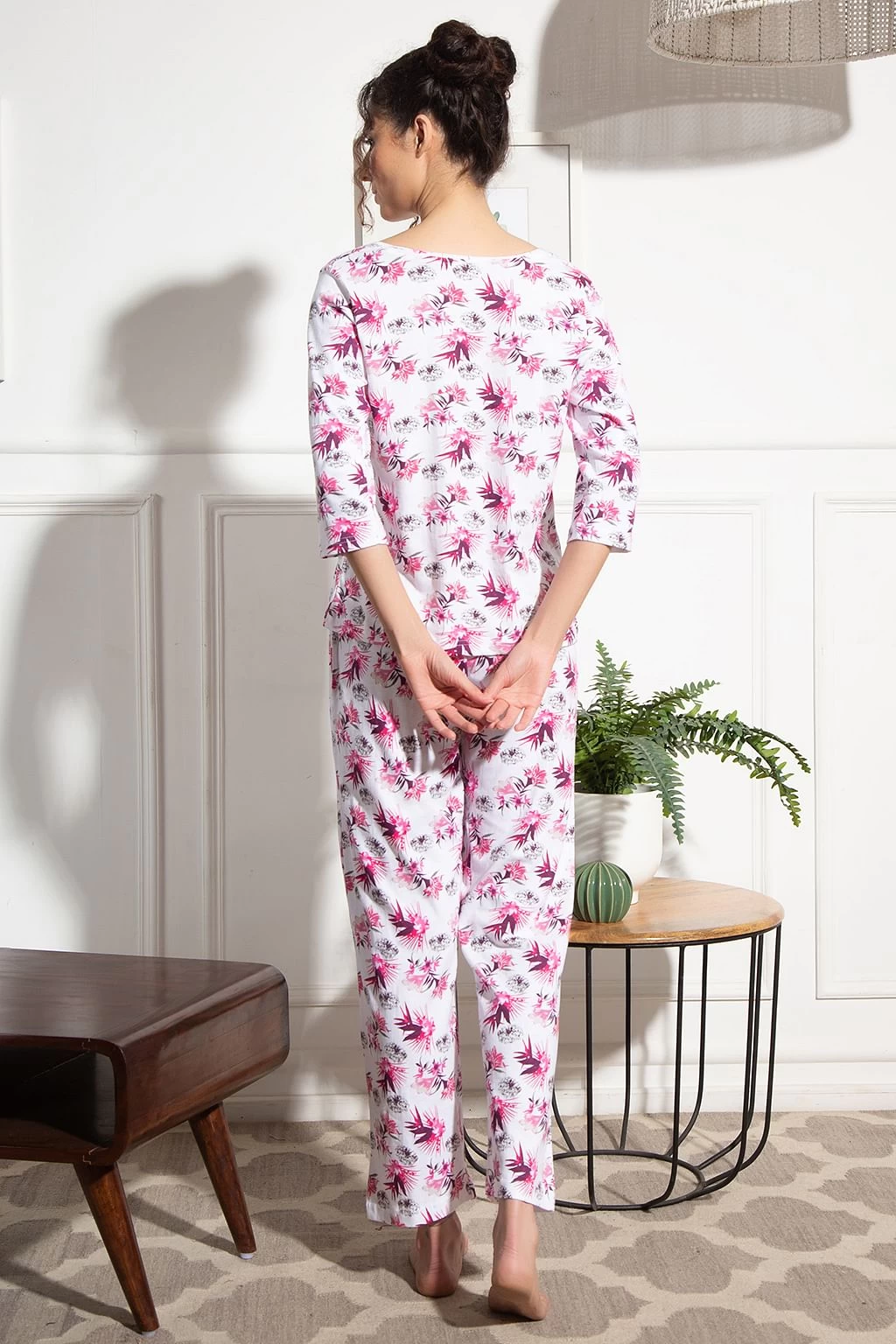 White top & pyjama set crafted with soft & premium 100% cotton fabric.