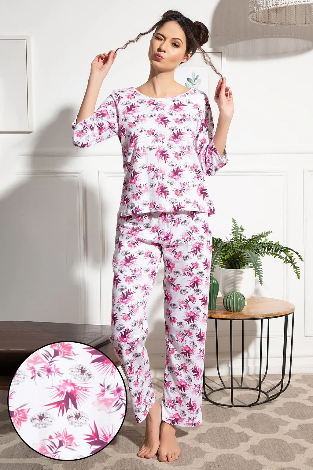 Be the first to review “Pretty Florals Top & Pyjama Set In White – 100% Cotton” Cancel reply