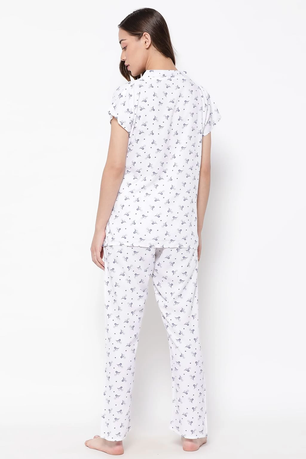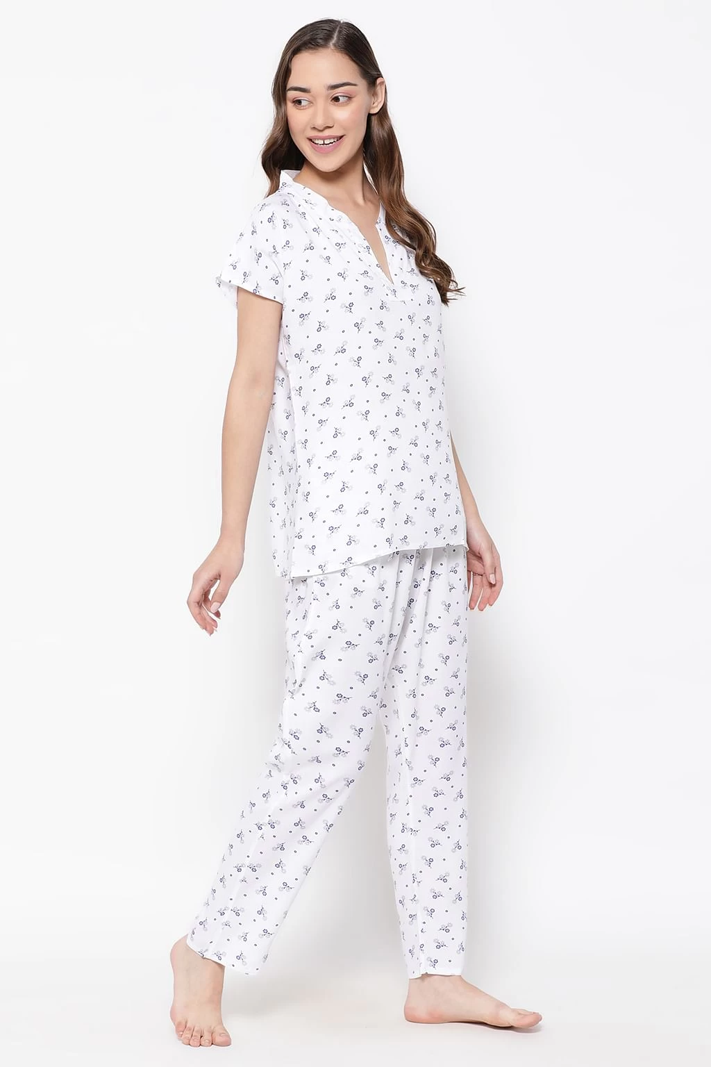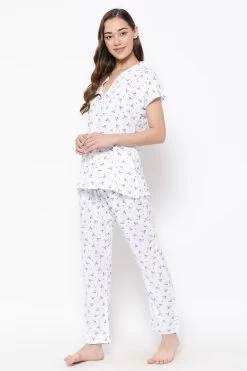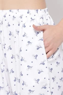 Pretty Florals Top & Pyjama Set In White – Rayon