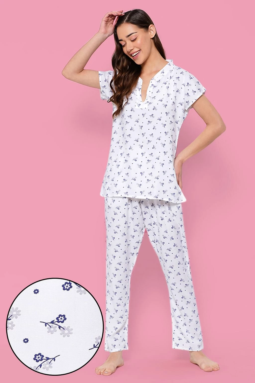 Be the first to review “Pretty Florals Top & Pyjama Set In White – Rayon” Cancel reply