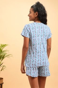 Cornflower blue top & shorts set crafted with soft & premium 100% cotton fabric.