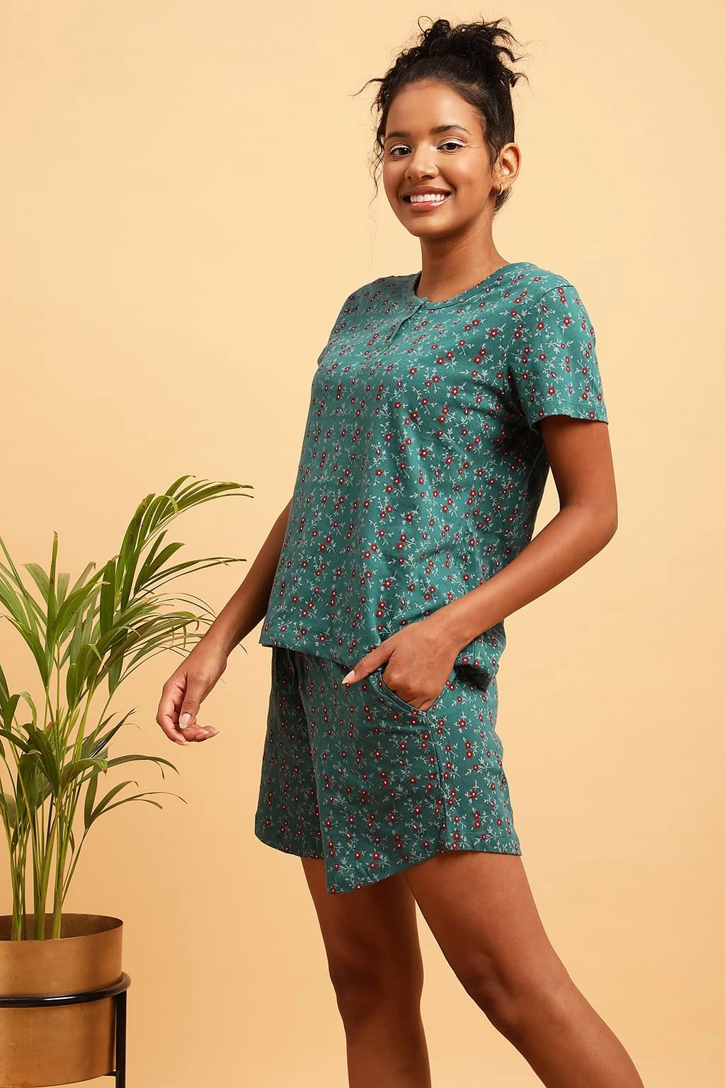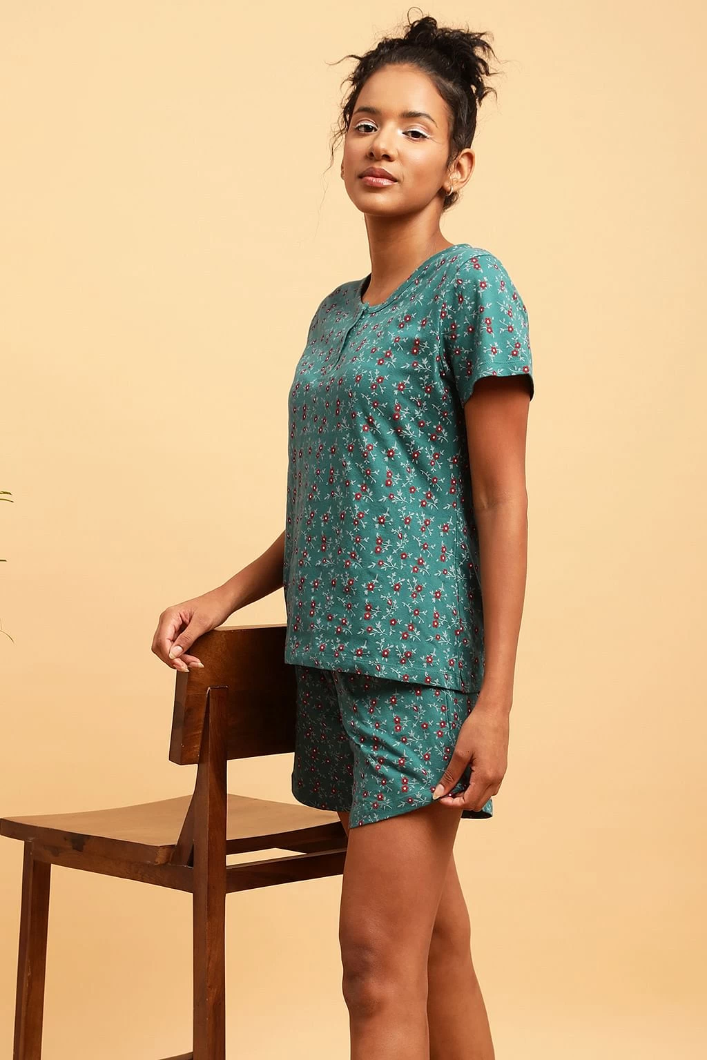 Teal blue top & shorts set crafted with soft & premium 100% cotton fabric.