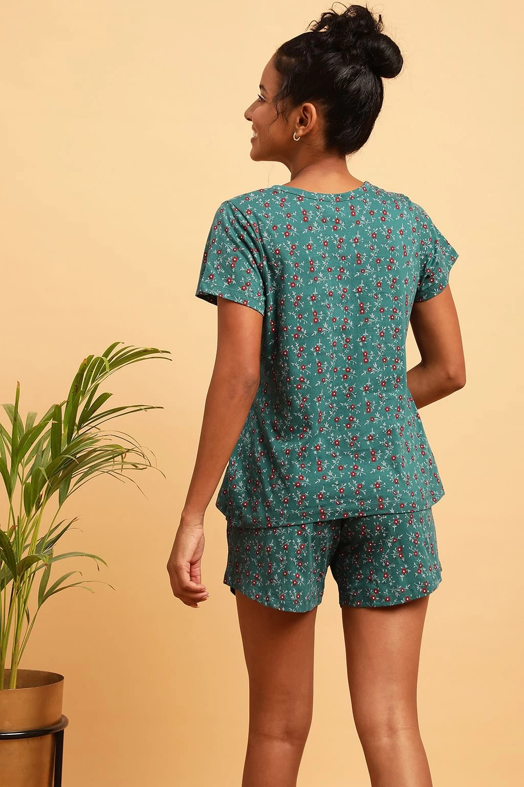 Pretty Florals Top & Shorts Set In Teal Blue – 100% Cotton