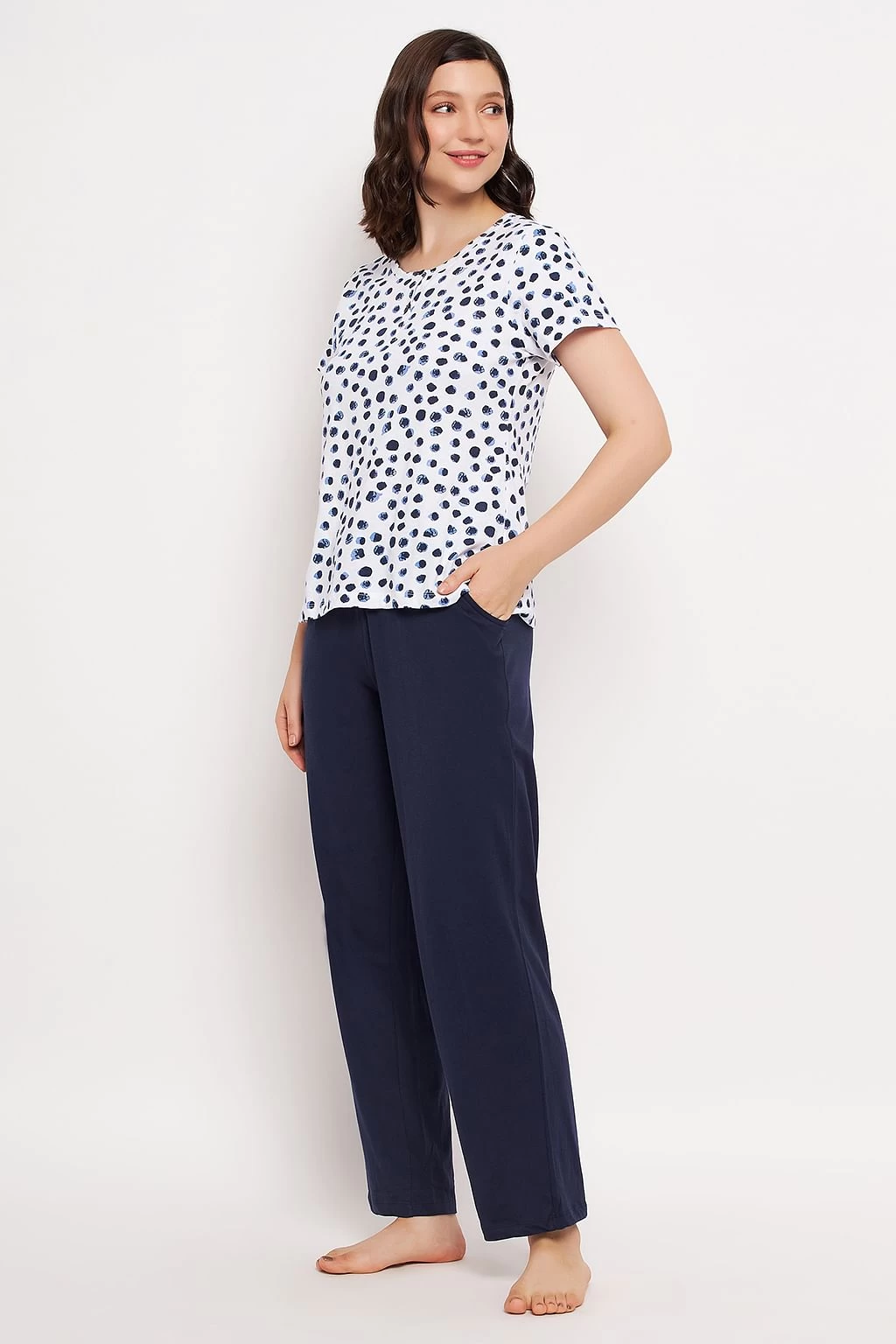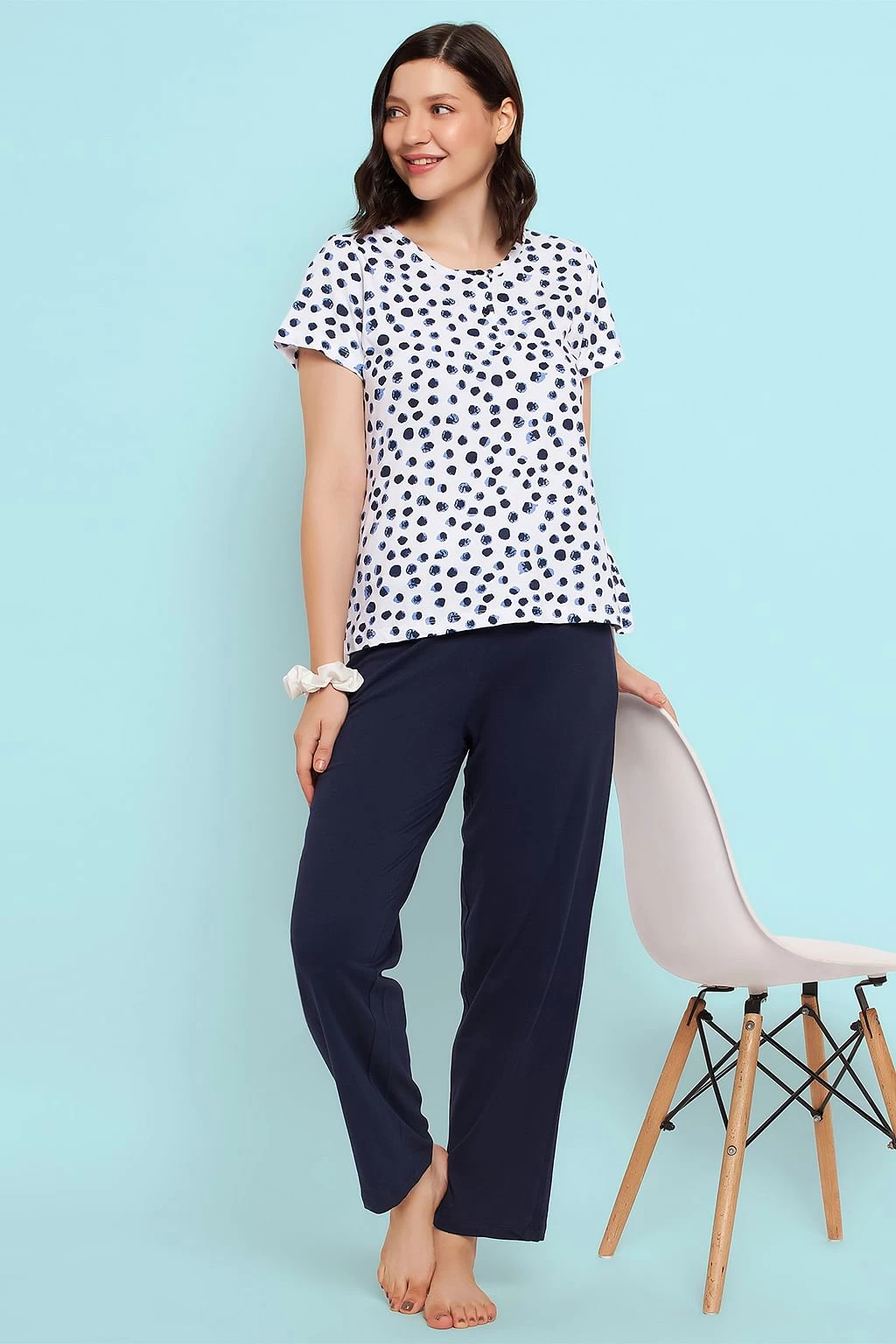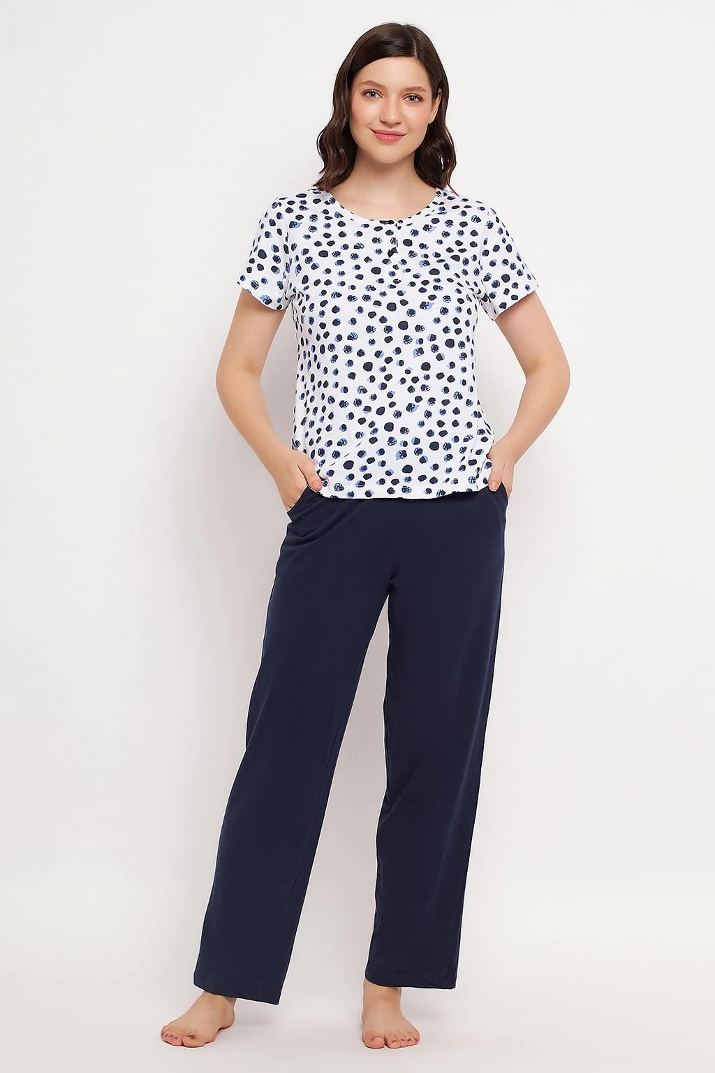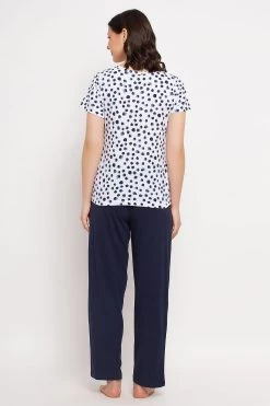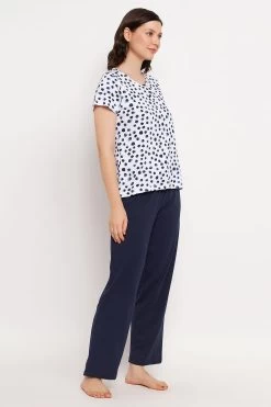 Print Me Pretty Top In White & Chic Basic Pyjama In Navy – 100% Cotton