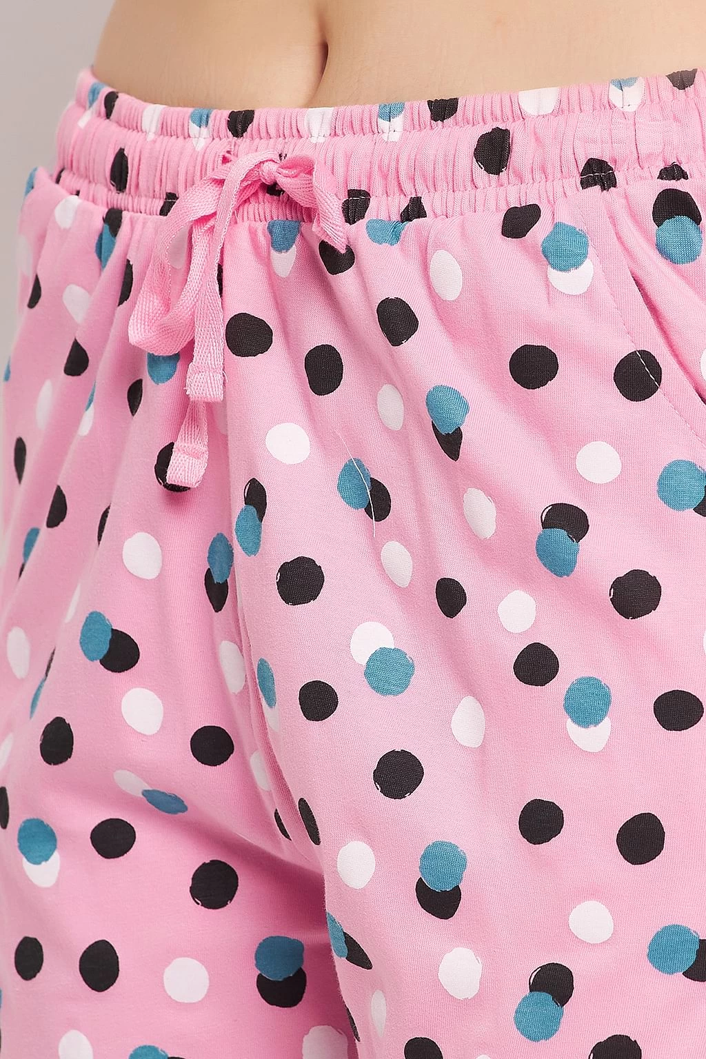 Pyjama is designed with blue & white dot print all over.
