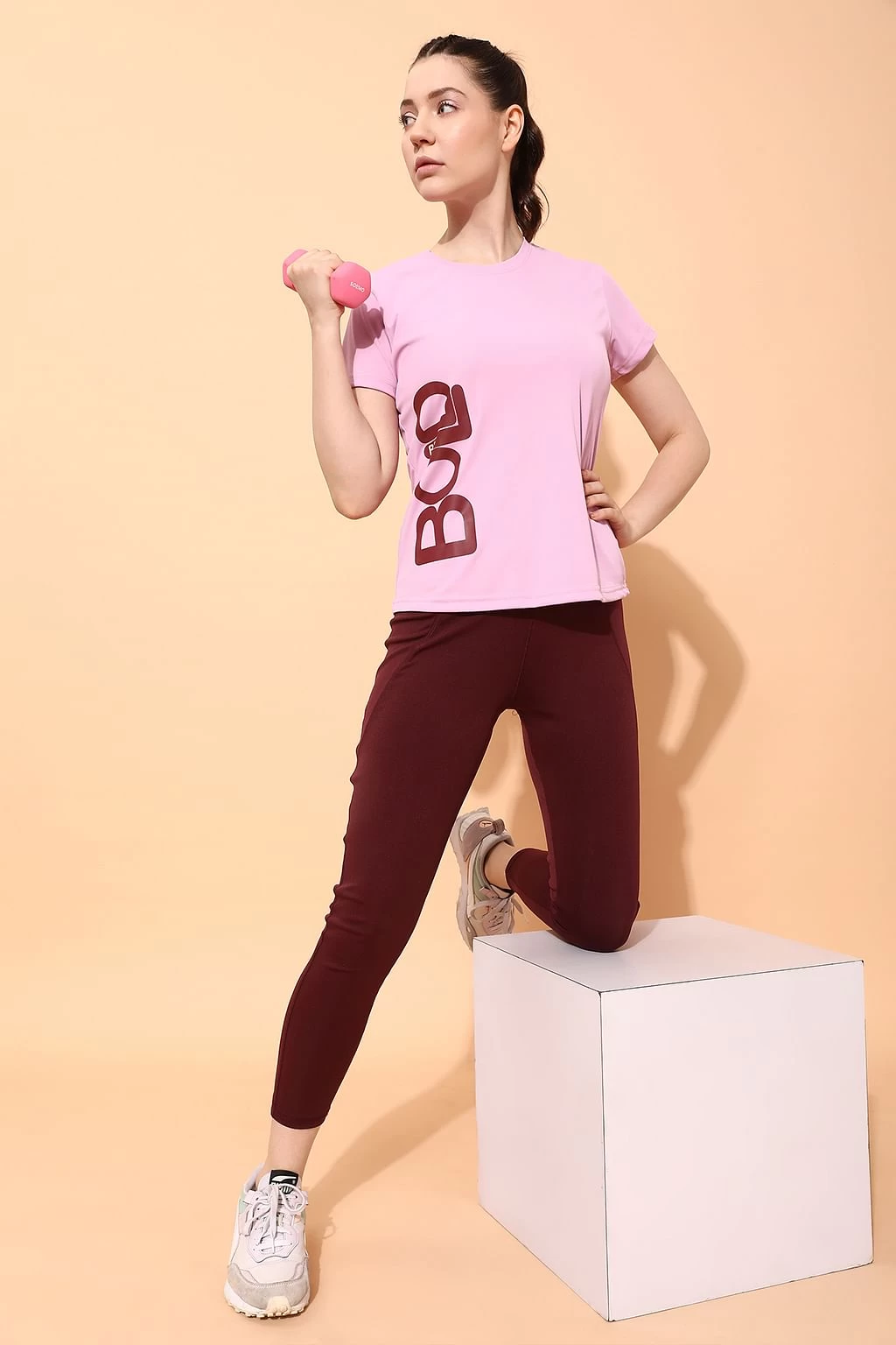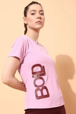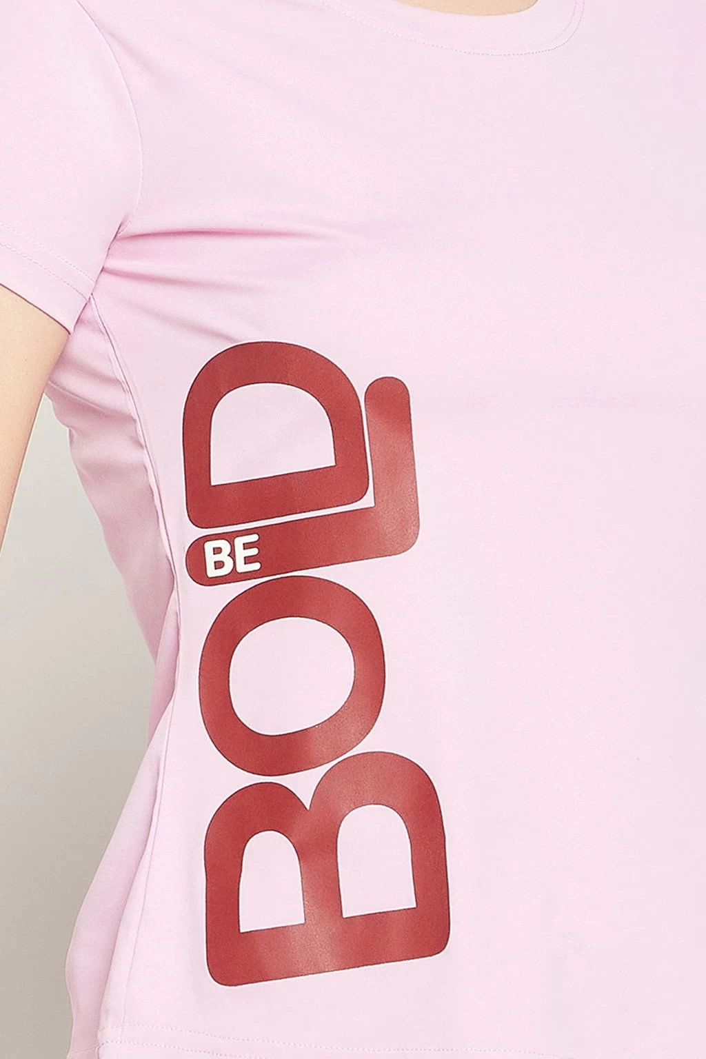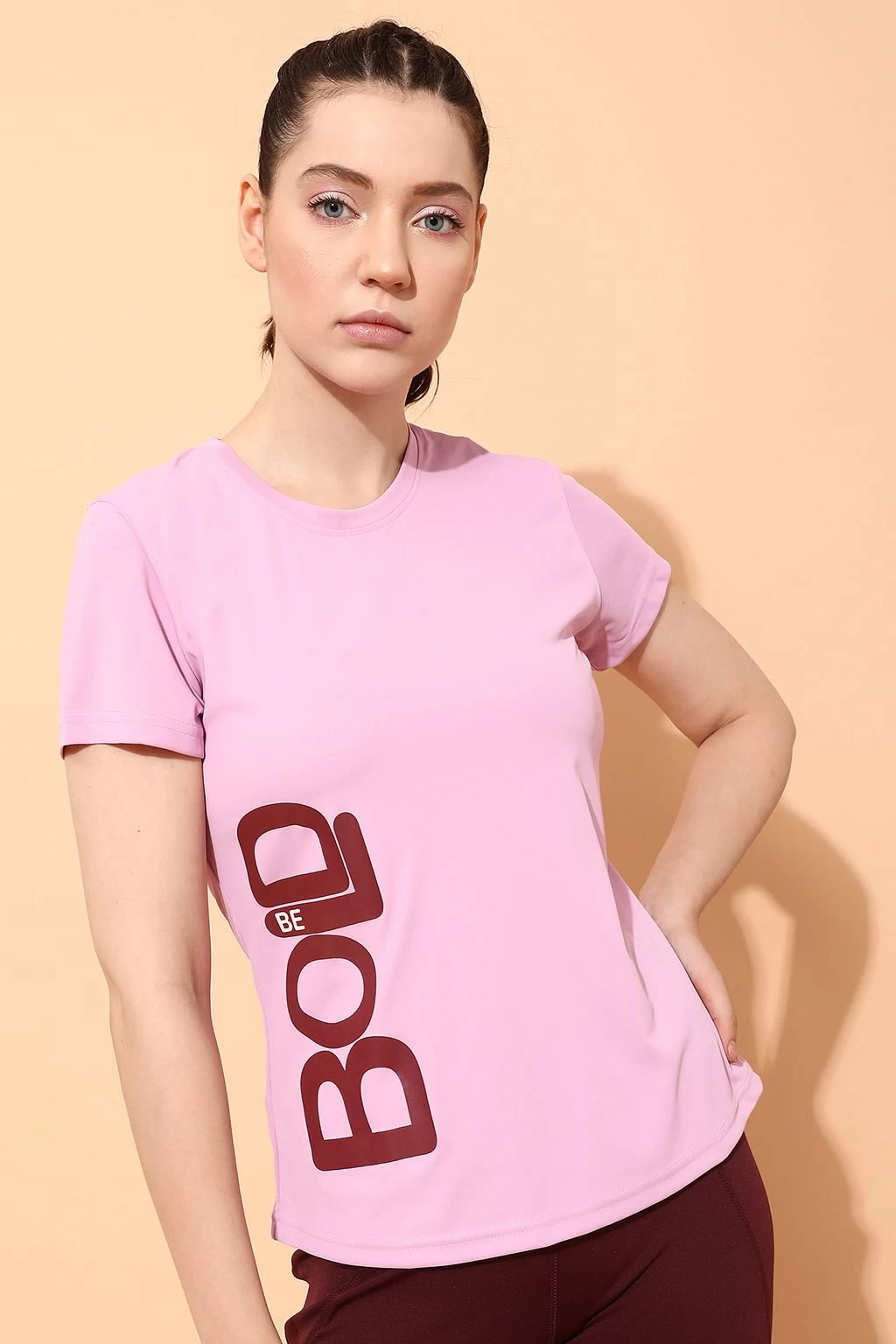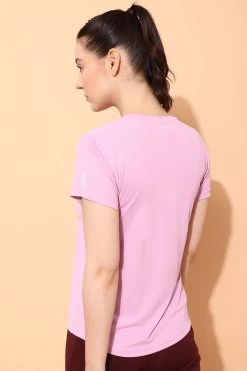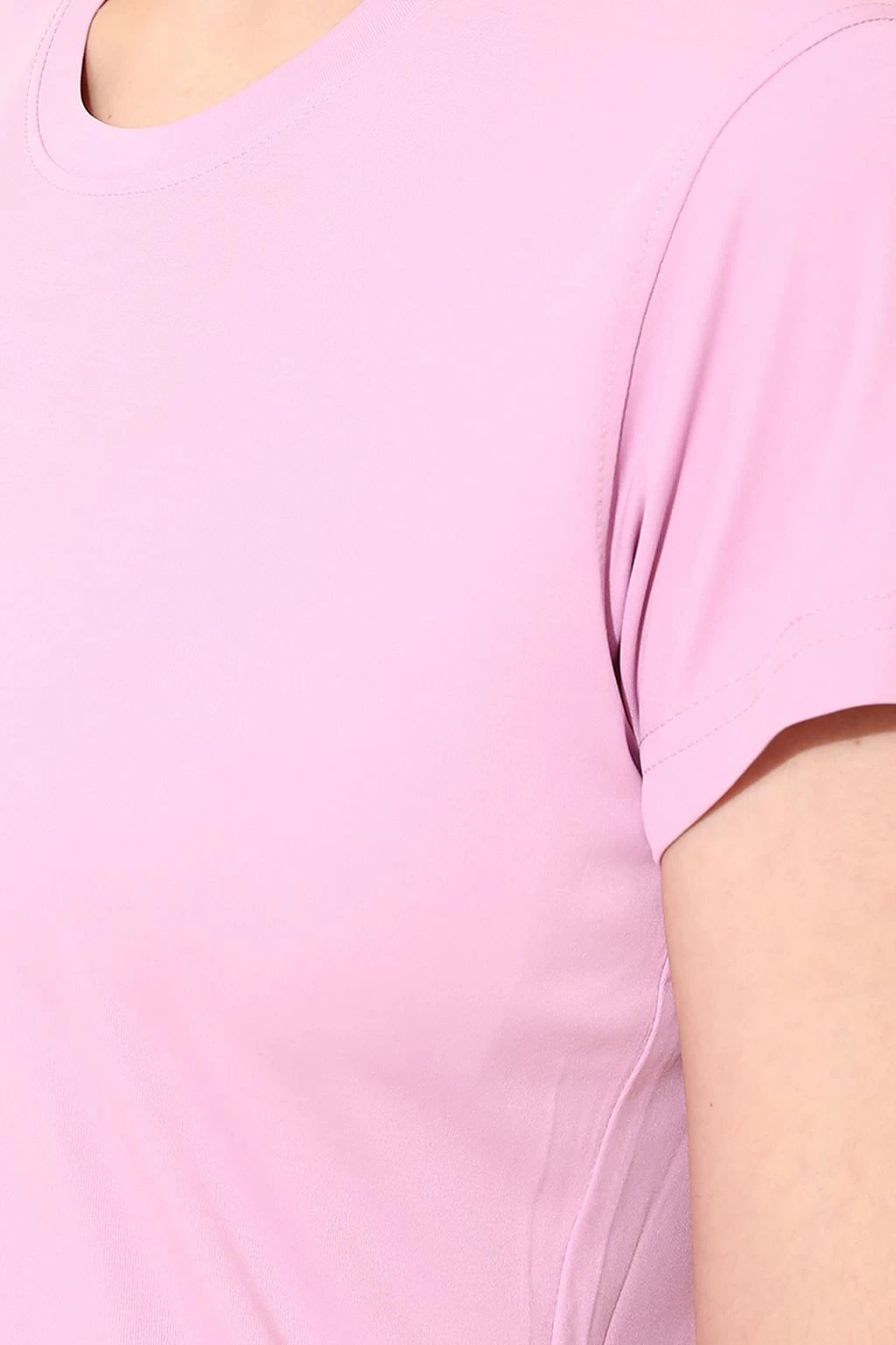 Light pink comfort fit sports T-shirt crafted with 4-way stretch 100% polyester fabric that moves along with your movement.
