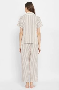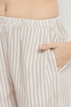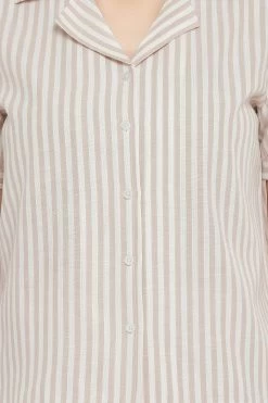 Sassy Stripes Button Down Shirt & Pyjama Set In White – Crepe