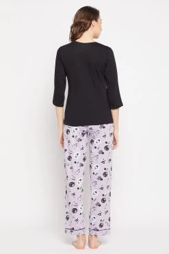 Black top & lilac pyjama set crafted with soft & premium 100% cotton fabric.