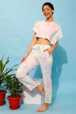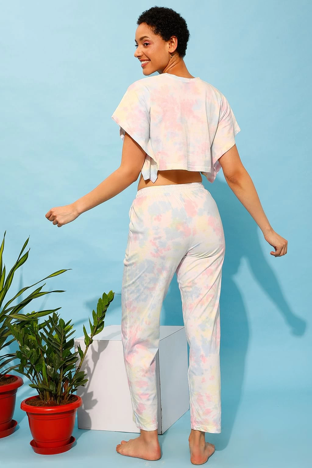 Tie-Dye Print Kaftan-Style Crop Top & Pyjama Set In Multicolour – 100% Cotton