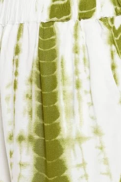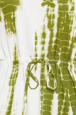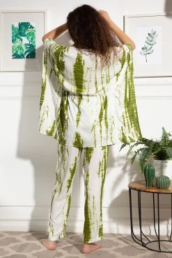 Tie-Dye Print Kaftan Top & Pyjama Set In Olive Green – Rayon