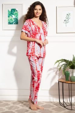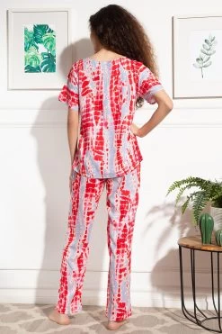 Tie-Dye Print Top & Pyjama Set In Pink – Rayon