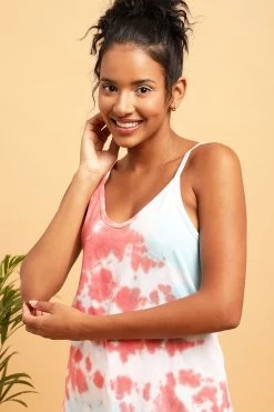 Designed with white & red tie-dye print all over.
