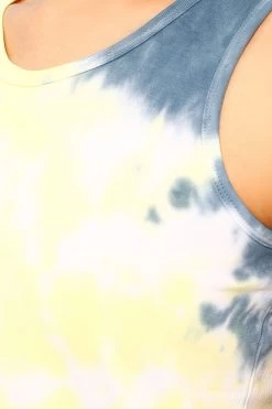 Designed with yellow, dark blue & baby pink tie-dye print all over.
