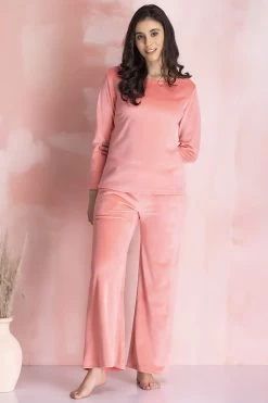 Midnight Cravings Button Down Shirt & Pyjama Set In Peach Colour – Satin