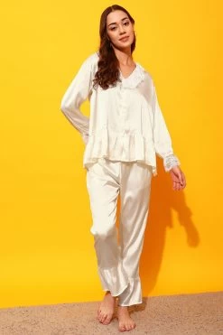 Chic Basic Button Down Shirt & Pyjama Set In Wine Colour – Satin