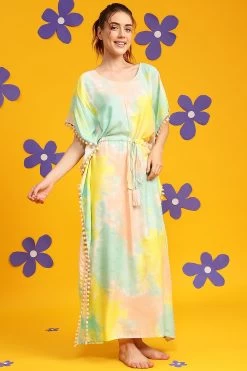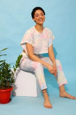 Tie-Dye Print Kaftan-Style Crop Top & Pyjama Set In Multicolour – 100% Cotton